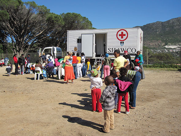 SHAWCO's mobile clinic, seen here with community members in Imizamo Yethu on 25 July 2009, continues to provide vital healthcare services.