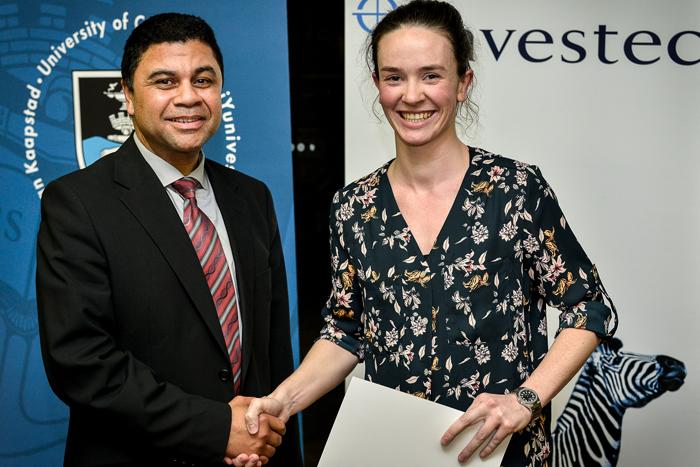 Danielle Ferrar, president of the UCT Surgical Society and the International Association of Student Surgical Societies, with Prof Francis Petersen.