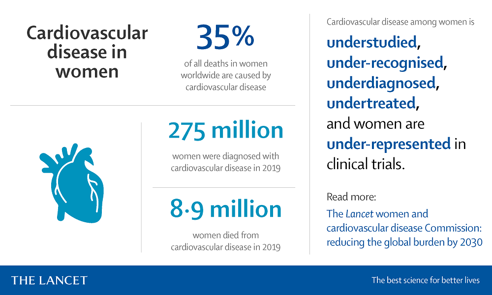 Cardiovascular disease is the leading cause of death in women. The Lancet women and cardiovascular disease Commission: reducing the global burden by 2030 aims to connect stakeholders, ignite global awareness of sex-related and gender-related disparities in cardiovascular disease, and to provide a springboard for future research.