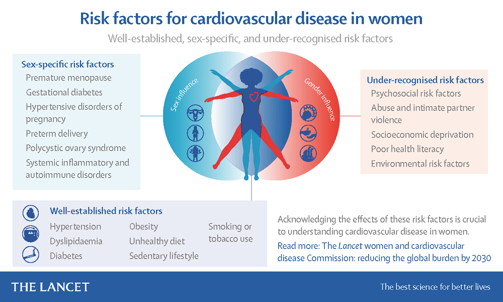 There is strong evidence that important established risk factors contribute to ischaemic heart disease. However, many other important under-recognised risks—including psychological, social, economic, and cultural factors that are often influenced by gender—appear to contribute to cardiovascular disease in women.