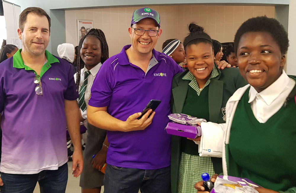 The Grade 10’s were then invited to enjoy a delicious lunch sponsored by King Pie. The King Pie combo meals were enjoyed while pupils were given an opportunity to ask the lecturers any questions they may have had about diseases or studying science. After lunch, the students and organisers gathered on the grass to take group photos. Rabie kindly sponsored printed memorabilia t-shirts for the day as gifts to the students and these were donned during the photo shoot.