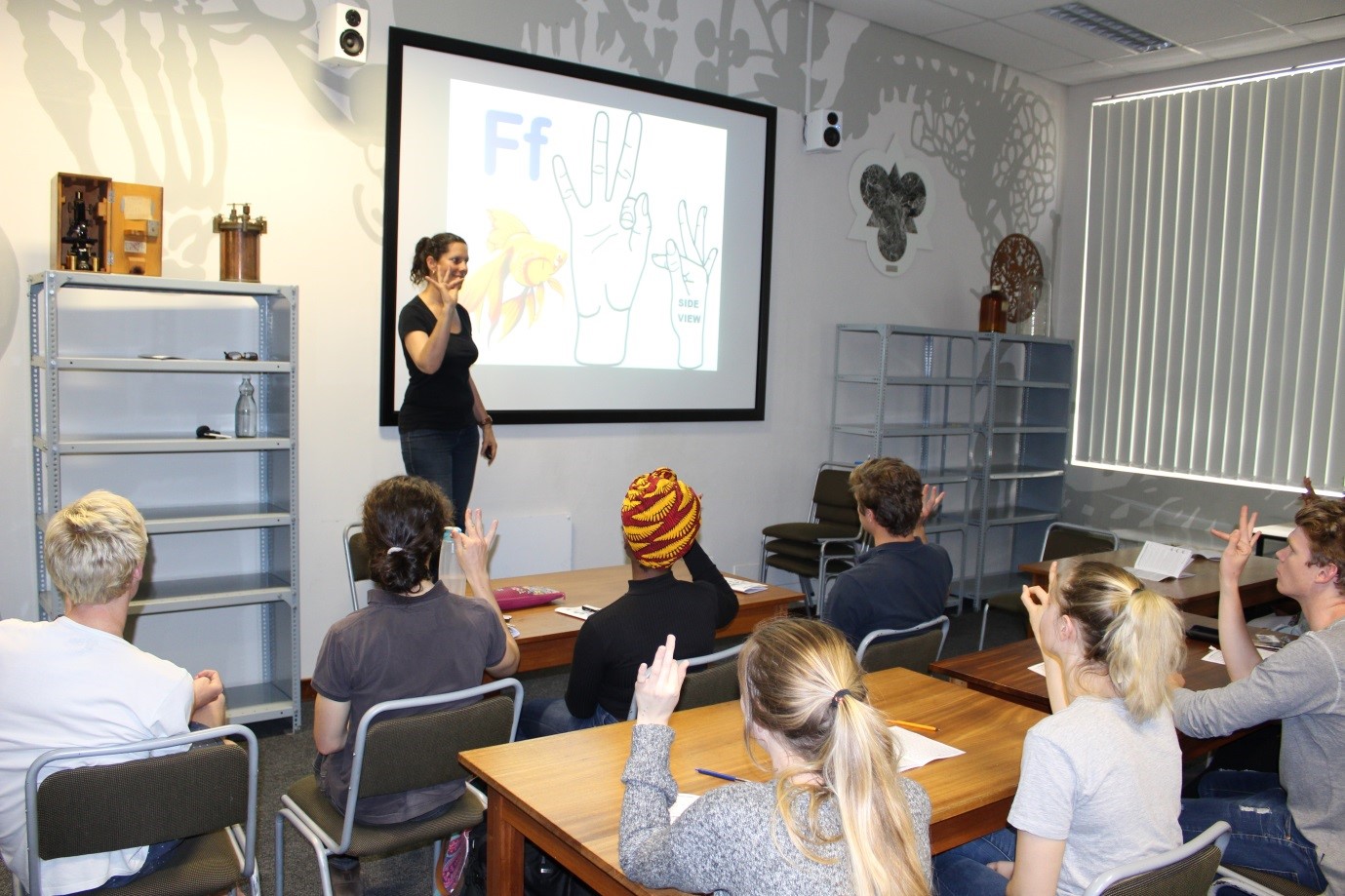 In June 2017 two medical students– Banele Mhlongo and Vuma Mthembu contacted Dr Marion Heap in the School of Public Health and Family Medicine with a proposal. They wanted a course in sign language for their Third Year MBChB student class. There was support from the Head of Division and the Deputy Dean for Undergraduate Education, who in turn referred Banele and Vuma to Professor Louw. Professor Louw too was supportive. Dr Ramesar stretched the budget to cover costs and she and Candice Dykes found time slots and venues.