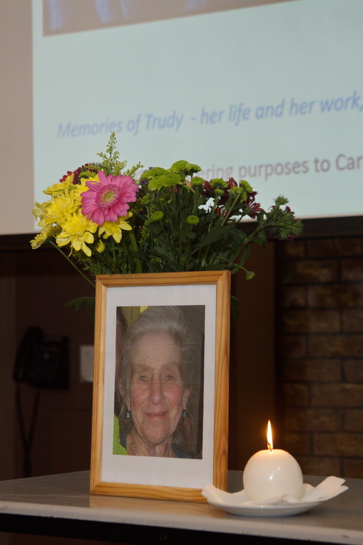 The memorial was attended by a wide range of people who knew Trudy from the many roles and activities that she took on. There were flashes of mutual excitement when, people sitting across the room, recognised each other, having met through Trudy, and later renewed friendships over snacks.